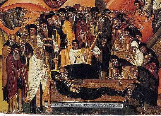 Успение преподобного Ефрема Сирина. Греция, XV век