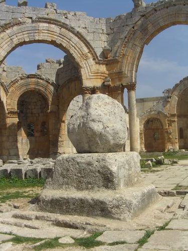 Монастырь преподобного Симеона Столпника, самый впечатляющий христианский памятник ранневизантийской архитектуры в Сирии. Основную часть обители составлял огромный храм из четырех базилик, поставленных крестом вокруг колонны, на которой святой праведник провел почти 37 лет своей жизни. Однако ни время, ни люди не пощадили это святое место. Сохранившиеся величественные развалины монастырского комплекса придают особое ощущение месту, где до сих пор находится великая христианская святыня – часть столпа, в форме гигантского яйца – остатки двенадцатиметровой колонны, воздвигнутой самим преподобным Симеоном.