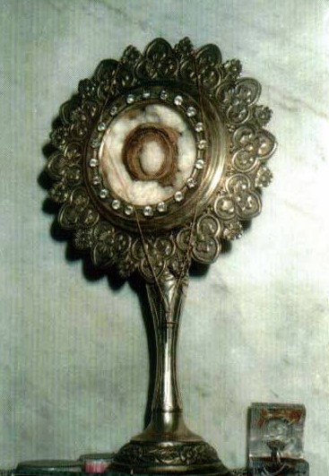 Весной 1953 года в монастыре в Мардине[37] обнаружили старинный манускрипт на арамейском языке. Когда монахи расшифровали текст, то были поражены. Из рукописи следовало, что в храме города Хомса хранится неизвестная часть легендарного пояса Богородицы. Пол храма решили вскрыть, и в одном месте нашли каменный куб черного цвета. Он испещрен строчками арамейского письма с характерным наклоном букв влево. Надпись гласит: «Сей храм заложен в 59 году от Рождества Христова». Когда верхнюю плиту куба подняли, под ней оказался маленький серебряный ковчег. Внутри лежал скрученный колечком пояс из верблюжьей шерсти и золотых нитей длиной около 60 сантиметров. Анализ, проведенный учеными, показал, что находка пролежала в земле около тысячи лет. Пояс Пресвятой Богородицы местные христиане спрятали то ли от арабов во время штурма Хомса в 636 году, а, может быть, – во время нашествия других завоевателей.