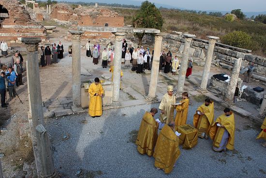 А в храме Пресвятой Богородице в Эфесе — это первый в мире храм, освященный во имя Матери Божией — проходил III Вселенский Собор. От него, к сожалению, остались лишь руины, и наше богослужение проходило под открытым небом.