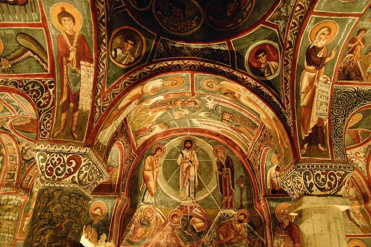 Все скальные храмы Каппадокии удивительно гармоничны. Камерность, неброская и уютная атмосфера пещерных храмов говорит о том, что они создавались с расчетом на то, что храмы эти – сокровенная тайна, о которой никто не узнает. Во многих алтарях каппадокийских храмов сохранились монолитные престолы и прообразы современных иконостасов. Во многих храмах расписан только алтарь, а потолок храмовой части занимает большой крест, символизирующий просвещение всего мира светом христианства. Целиком сохранившихся фресок здесь не встретить, поскольку Каппадокия с XV века принадлежала Османской империи. Фанатичные исламисты повсеместно уничтожали лики святых на храмовых фресках, бросая в них камнями, что на Востоке является излюбленным способом поругания чего-либо. Несмотря на это, все храмы торжественны и монументальны и до сих пор сохраняют святость происходивших здесь Таинств.
