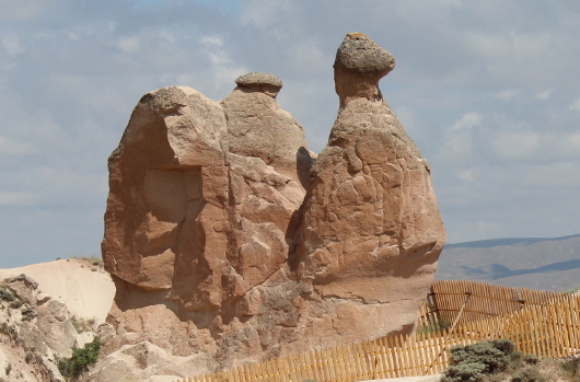По дороге в Ургюп из долины Зельве мы делаем остановку для фотографии в долине Дервент. Здесь находится причудливое каменное изваяние в виде верблюда. Естественно, тут всегда останавливаются туристические автобусы, поэтому поймать момент для удачного ракурса бывает трудно. Если есть время, то сюда можно приехать на закате, поискать другие причудливые фигуры животных или людей. Мы же поехали дальше.