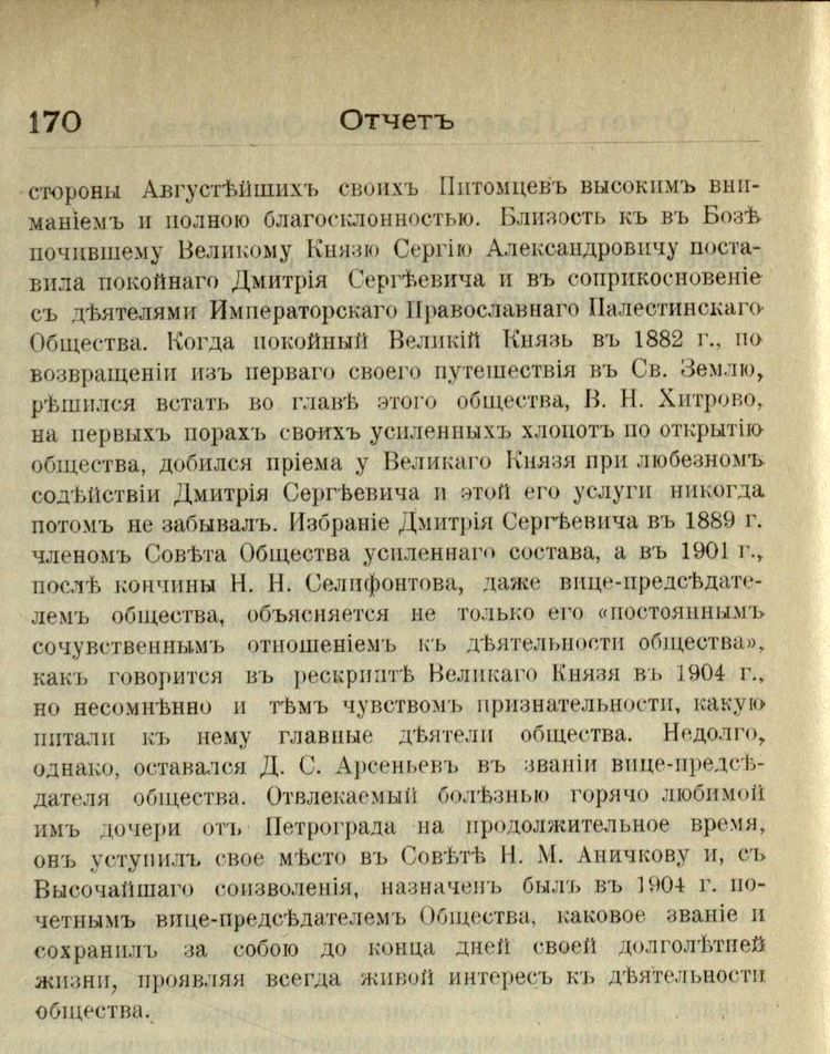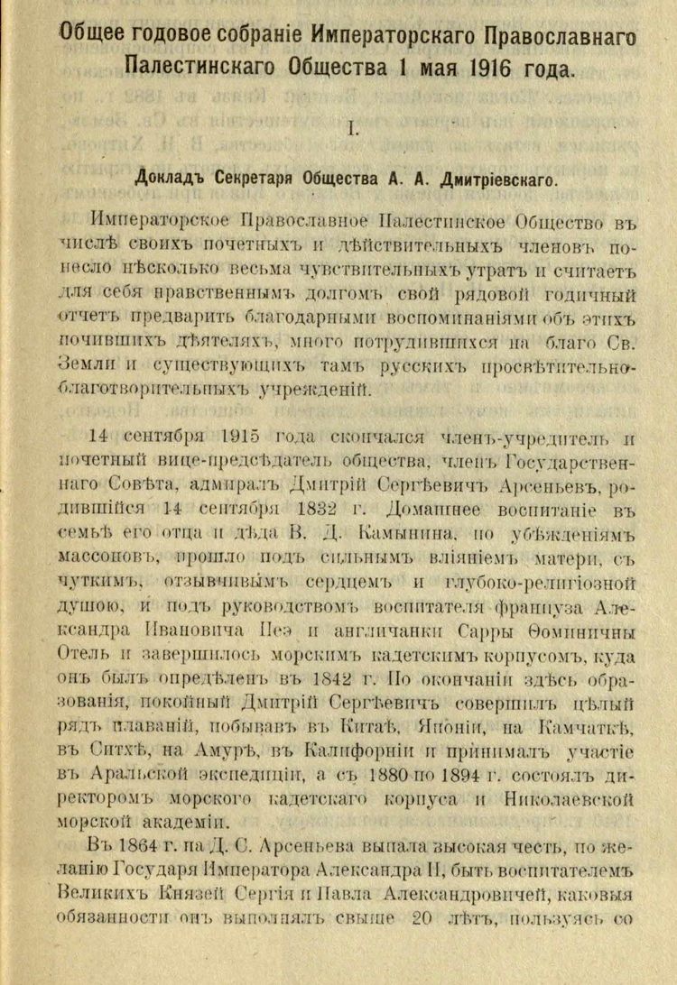 О кончине Д.С. Арсеньева в отчете Императорского Православного Палестинского Общества