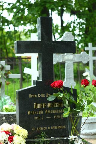 Умер А.А. Дмитриевский 10 августа 1929 г. и был похоронен на Никольском кладбище Александро-Невской лавры. Долгое время над могилой стоял одинокий крест, но недавно трудами его родственников был установлен мраморный памятник.