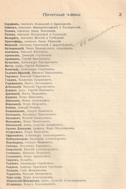 Третья страница списка почетных членов ИППО на 1 ноября 1910 г.