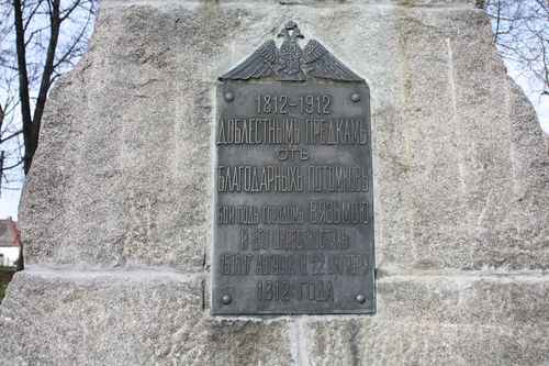 Памятник представлял собой круглую гранитную колонну, в середине пересеченную кубом, установленную на высоком постаменте. Верх колонны венчал двуглавый орел, сидящий на полусфере. На боковых гранях куба были выполнены надписи, среди которых главная: «22 октября 1912 года Перновские гренадеры, благодарные своим предкам-героям, стяжавшим боевую славу, высокия награды и вписавшим в историю лучшую страницу подвигов русскаго оружия в бою под городом Вязьмой 22 октября 1812 года». Разрушенный в богоборческие годы памятник вновь восстановлен в 1962 году к 150-летию Отечественной войны 1812 года.