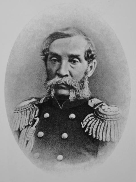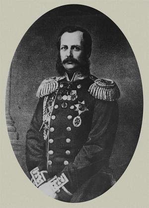 Путятин Евфимий Васильевич (07.11.1804-16.10.1883), граф (1855), адмирал (1858), выдающийся государственный и военный деятель, дипломат, мореплаватель, востоковед. Из дворян Новгородской губернии. Окончил Морской кадетский корпус (1822). Совершил кругосветное плавание на фрегате «Крейсер» под командованием М.П. Лазарева (1822-1825). Участник Наваринского сражения (1827), военных действий на Кавказском побережье (1838-1839), экспедиции против туркмен (1841), плавания на Каспии близ границы с Персией (1842). Возглавлял дипломатические миссии в Персию (1841), Японию (1852-1855, 1858), Китай (1858). Морской агент (атташе) в Лондоне (1856). Вел переговоры и подписал первые договоры России с Японией (1855, 1858) и Китаем (1858). Министр народного просвещения (1861). Член Государственного Совета (1861). Совершил паломничество в Святую Землю. Благотворитель Русской Духовной Миссии в Иерусалиме. Содействовал В.Н. Хитрово в создании Православного Палестинского Общества.