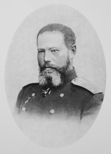 Хитрово Александр Михайлович (3.7.1845-17.7.1911), генерал-лейтенант. (Далее Прим.Ros-Vos.net). Правнук генерал-фельдмаршала М. И. Кутузова. Окончил Орловский Бахтина кадетский корпус (1863), 3-е военное Александровское училище (23.05.1864), Михайловское артиллерийское училище (1865). Произведен в офицеры 07.08.1865. Участник русско-турецкой войны 1877–1878 гг. Окончил Михайловскую Артиллерийскую академию по 1-му разряду. Командир 2-й батареи гвардии конно-артиллерийской бригады (04.11.1884). В 1899-1902 гг. был командиром 36-й артиллерийской бригады, дислоцировавшейся в Карачеве, затем начальником артиллерии 13-го армейского корпуса.