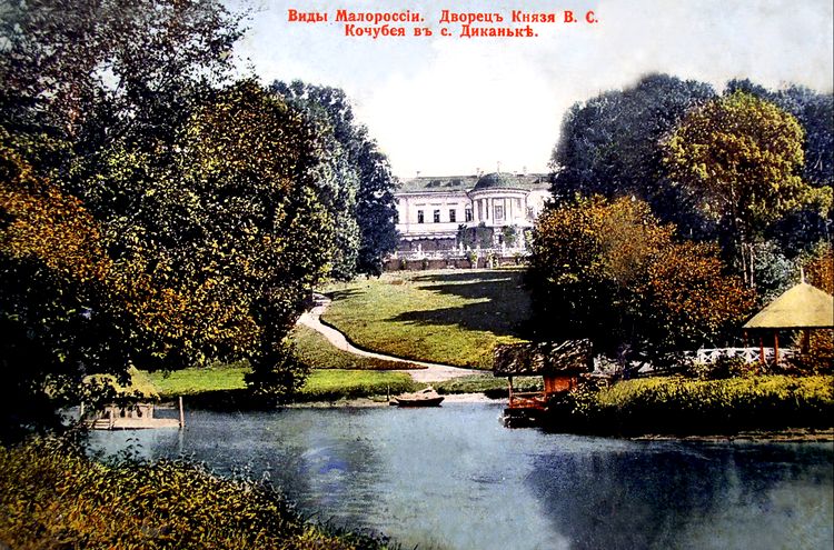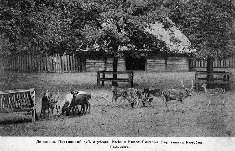 "Имение "Диканька" Полтавской губ. и уезда принадлежит уже с XVII в. роду  Кочубеев. В настоящее время владеет имением князь Сергей Викторович  Кочубей, главный управляющий уделов.
