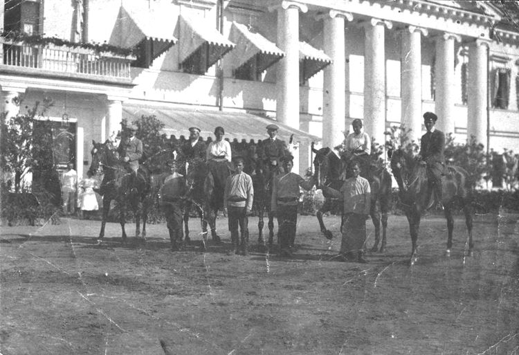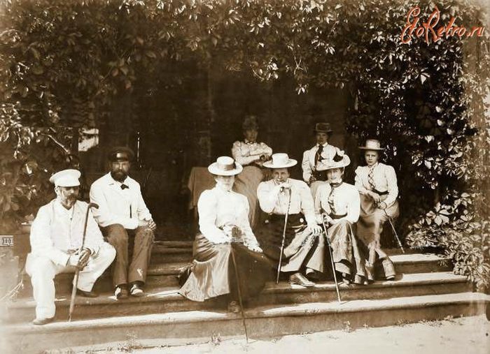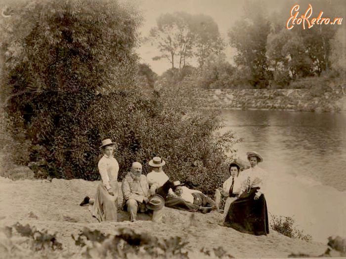 Княгиня Елена Константиновна Кочубей (третья справа) с гостями в имении в Диканьке.