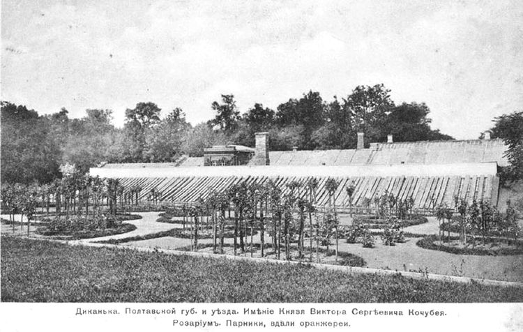 При Викторе Сергеевиче Кочубее Диканька процветала. На участке в 3860 десятин нашлось место и большому красивому дворцу с домовой церковью Марии Египетской, и уютному парку с прудами, фонтанами и античными беломраморными скульптурами, привезенными из Италии и Греции, и фруктовым садам, и конному заводу по разведению породистых английских скакунов, и специальным фермам, где бродили фазаны и павлины, паслись олени, выращивались тонкорунные овцы, молочной породы коровы, темворские рыжие свиньи родом из Англии... Были свои мастерские и электростанция, оранжереи и парники.