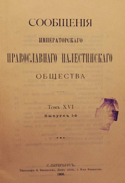 Сообщения Императорского Православного Палестинского Общества. Том XVI, вып.1-й. 1905 г.