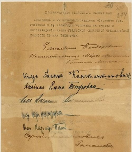 В Центре документации общественных организаций Свердловской области хранится уникальный документ (это его официальный статус) – расписка Великих князей и княгинь Романовых, а также сопровождавших их лиц о том, что им объявлено и они обязуются быть готовыми 19 мая 1918 года к 09.30 к отправке на вокзал. Из Екатеринбурга путь лежал в Алапаевск. Дальнейшее известно – приняли мученическую смерть в заброшенной шахте через сутки после расстрела царской семьи. Спастись удалось только княгине Елене Петровне, супруге Иоанна Константиновича. Со временем обстоятельства её спасения обросли самыми невероятными слухами. Как же всё было на самом деле? Рассказывает писатель, кандидат исторических наук Дмитрий Гришин (Москва), который приехал в Екатеринбург на научную конференцию в рамках Царских дней.