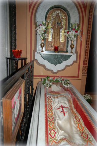 13/26 января 1921 г. пароход прибыл в Порт Сайд. «Здесь есть греческая церковь,— сообщала на следующий день брату принцесса Виктория,- и гробы на ночь были оставлены там. Мы пошли в церковь. Задрапированные в черное, они только что были установлены в маленькой боковой часовне. Там были: отец Серафим, монах, который ни разу не оставил их еще с Алапаевска; греческий священник и несколько русских людей. Было очень тихо и уединенно и спокойно в этой маленькой часовне. Только по одной свече горело у изголовья каждого гроба. Казалось таким странным идти при лунном свете в этом отдаленном городе, через пустые улицы; идти и встретить все, что осталось от нашей дорогой Эллы …Наружные гробы сделаны из дерева — китайского тика, с медной окантовкой, и большой медный Православный крест на них, и наверху — в голове Эллы укреплена в простой тиковой рамке ее хорошая фотография в одеянии сестры, и медная корона над ней. Гроб Вари — без портрета, но такой же, только меньше. Если ты помнишь, она была маленькой… Этим утром гробы будут отправлены опять товарным поездом в специальном вагоне, который будет переправлен паромом через канал… Монах и его два послушника едут в вагоне. По прибытии нас встретят катафалки и духовенство, и после короткой службы мы должны будем поехать через город к русской церкви св. Марии Магдалины, которая расположена возле Гефсиманского сада, около 4 километров от станции. Патриарх и церковные власти предложили, чтобы гробы были поставлены в церковь на несколько дней, и что я должна решить на месте — где их потом лучше установить. Будет большое богослужение, когда их будут переносить из храма туда. Я надеюсь, что найду там склеп под церковью, где они могут оставаться до тех пор, пока их можно будет повезти в Москву».