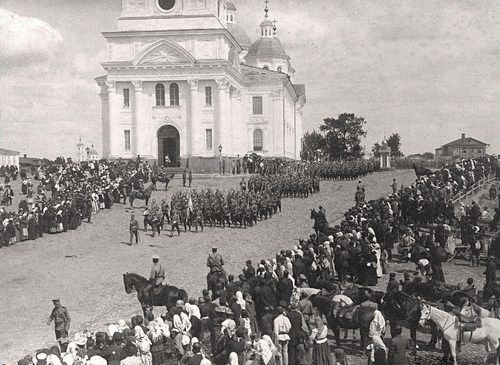Воинская часть на Соборной площади Кашина 11 июня 1909 г.