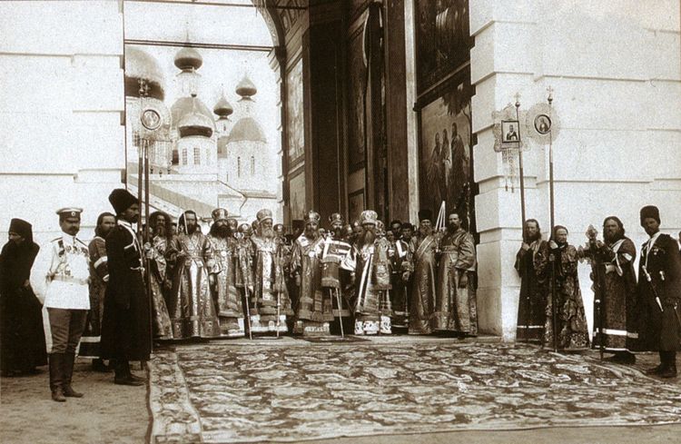 Государь Император Николай II со всеми остальными членами Дома Романовых присутствовал на молебне в Успенском соборе. Этот был последний день пребывания в Саровской пустыни.