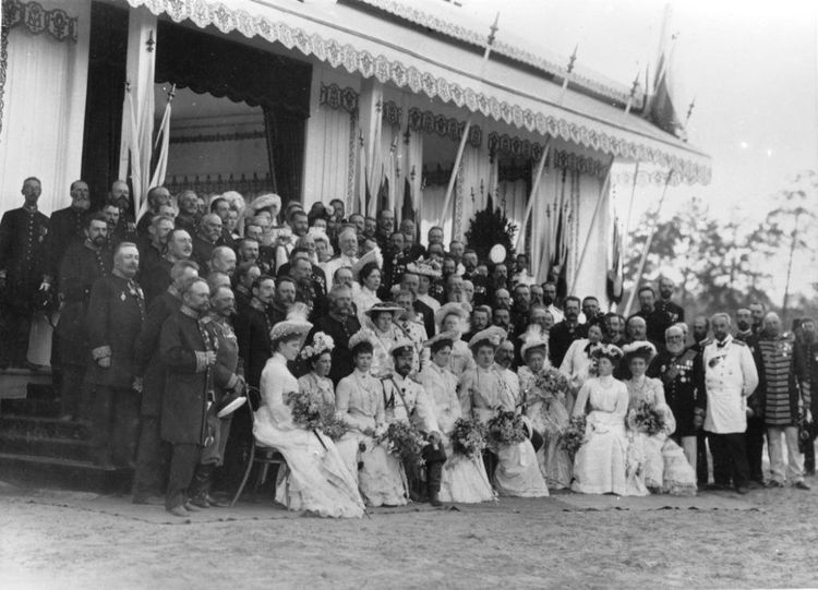 У павильона Тамбовского дворянства было сделано несколько шикарных снимков, на которых можно видеть всех членов Дома Романовых, включая Их Высочеств супругов Сергея Александровича и Елисавету Феодоровну.