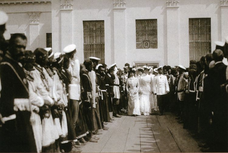 Государь Император Николай II с супругой и матерью осматривает Саровскую обитель