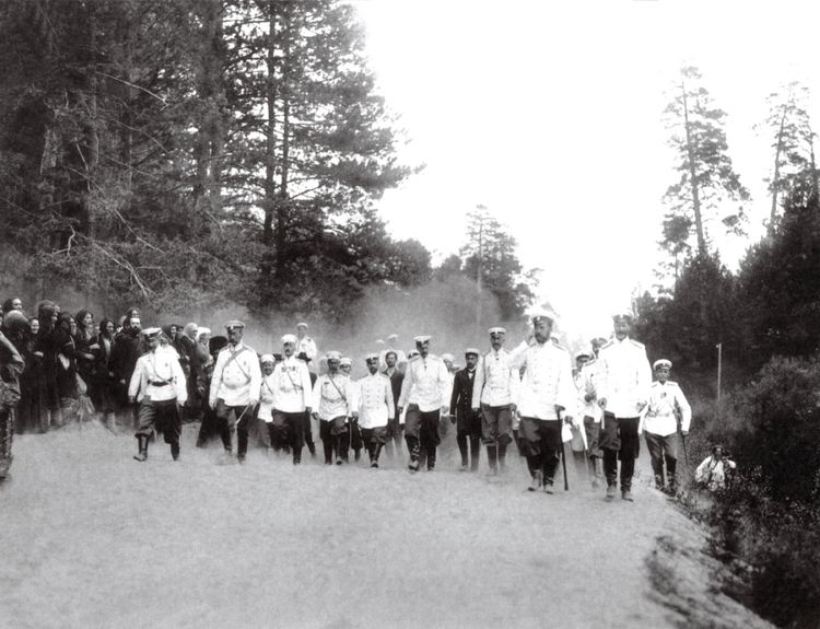 Их Величества спускались в пещеру, куда уединялся Преподобный и затем возвратились в обитель. Государь Император снова шел пешком с Великими князьями. Нужно было видеть восторженное и радостное настроение народа, усеявшего по пути Царского паломничества все живописные полянки и холмики и несмолкаемо приветствовавшего своего любимого Государя громким сердечным "ура! ". Его Величество в некоторых местах, милостиво улыбаясь, близко подходил к любящему его народу, и многие, в порыве радости и умиления, устремлялись целовать его царственную руку или полы его белой одежды. Все до глубины души умилены его высоким благочестием и с полной любовью и благоговением взирают на него, хотя и в подобающем ему царственном величии, но в смирении духа прибывшего в далекую пустынь засвидетельствовать свою веру в дивного Старца и вместе с верным и великим народом своим прославить его во святых и тем утвердить величие и истинность веры и Церкви Православной» [24].