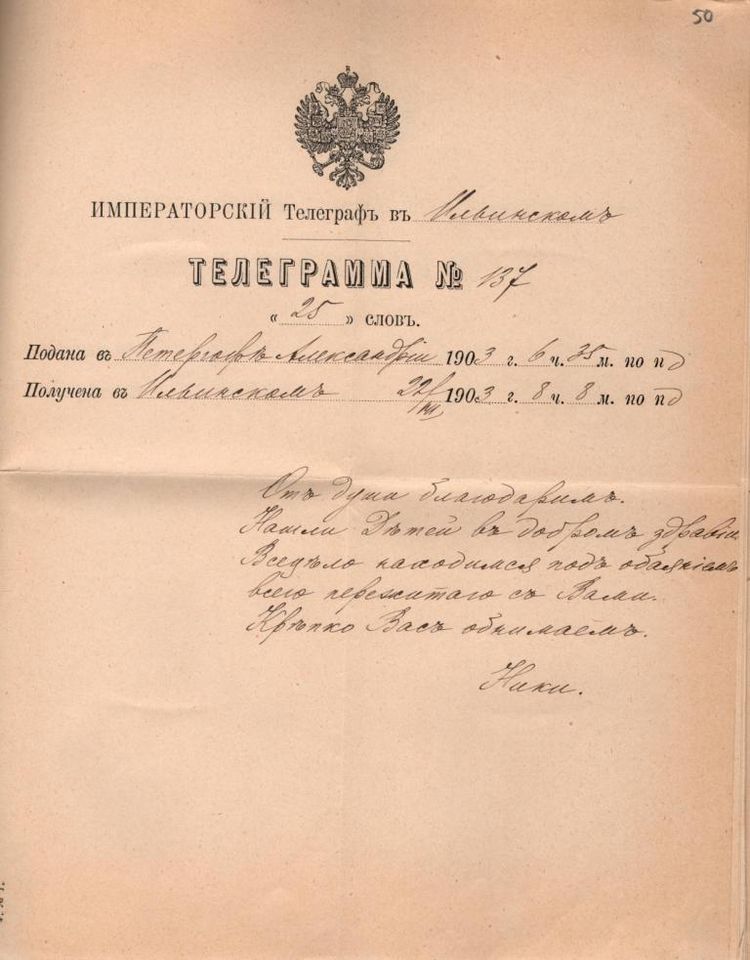 Телеграмма Царской Семьи Великому князю Сергею Александровичу и Великой княгине Елисавете Феодоровне. ГАРФ