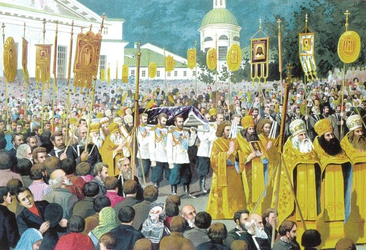 Великий князь Сергей Александрович шел в крестном ходе с мощами старца Серафима вторым, сразу за Государем Императором, а Великая княгиня Елисавета Феодоровна шествовала рядом с Государынями Императрицами Александрой Феодоровной и Марией Феодоровной, следом за архиереями.