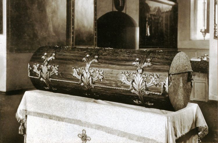Новый кипарисовый гроб, в который были переложены мощи отца Серафима