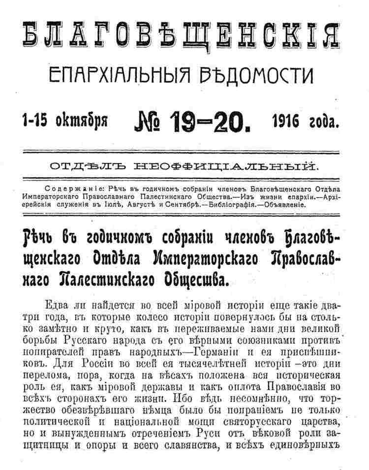 Речь в годичном собрании членов Благовещенского отдела Императорского Православного Палестинского Общества