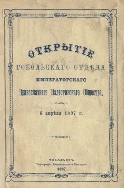М.Лебедев, прот. Открытие Тобольского отдела Императорского Православного Палестинского общества. 6 апреля 1897 г. / Тобольск. Тип. Тобольского Епархиального Братства. 1897.