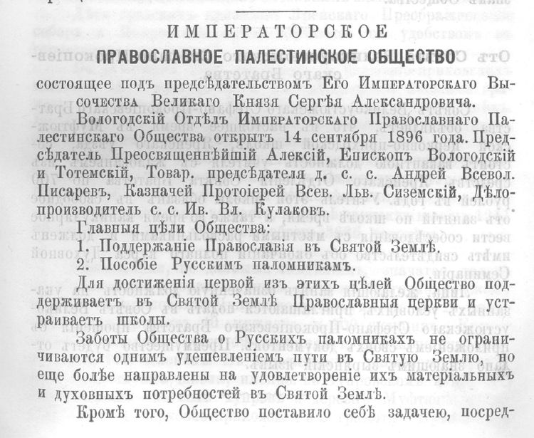 Из истории Вологодского отдела Императорского Православного Палестинского Общества
