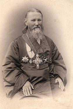 Фото святого праведного отца Иоанна Кронштадтского с золотым знаком почетного члена ИППО.