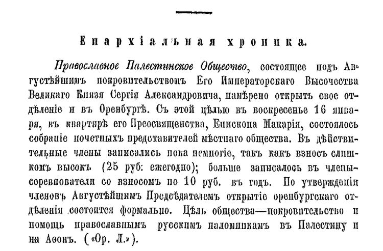 Из сообщения о годовом общем собрании Оренбургского отдела Православного Палестинского общества.1