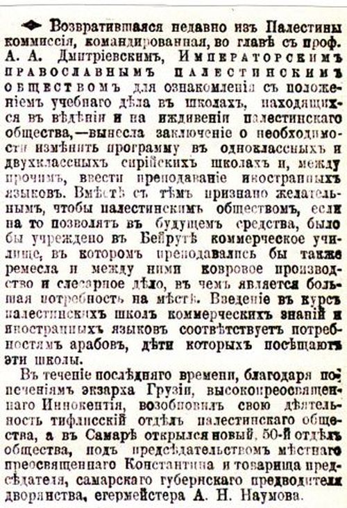 По благословению Святейшего Синода Императорскому православному Палестинскому обществу разрешено произвести во всех церквах Империи на службах Вербной недели тарелочный сбор для помощи православным в Иерусалиме и Святой Земле.