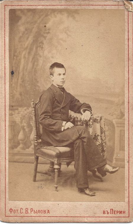 в Пермской духовной семинарии, но по собственному прошению в 1882 году был уволен