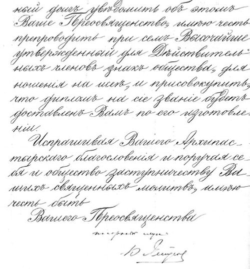 Письмо Председателя ИППО великого князя Сергея Александровича