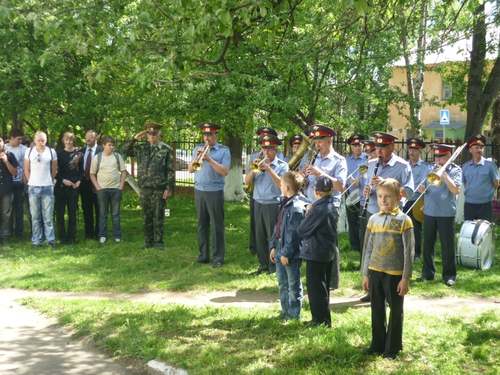 Торжественную церемонию открытия мемориальной доски и награждения победителей открытого историко-краеведческого турнира «Династия Романовых. Страницы Калужской истории» сопровождал духовой оркестр УВД по Калужской области, исполнив гимн России и патриотические марши.