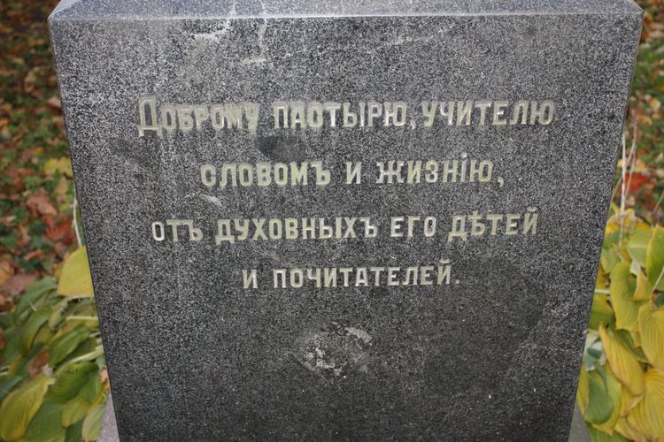 Погребение почившего отца Иоанна состоялось недалеко от главной кладбищенской каменной церкви во имя Спаса Нерукотворного Образа на фамильном участке у «Янышевских мостков».
