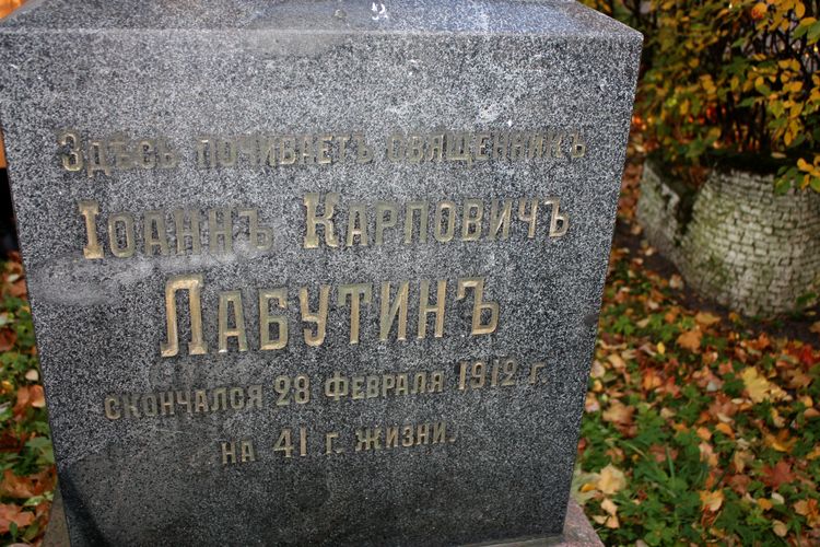 На Литераторских мостках Волковского православного кладбища в Санкт-Петербурге похоронен священник и писатель, действительный член Императорского Православного Палестинского Общества Иоанн Карпович Лабутин (1871 – 1912).