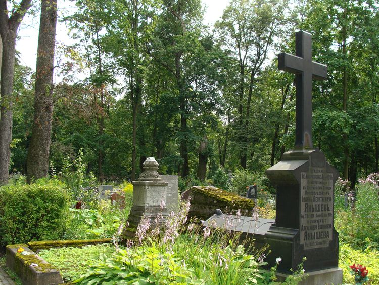 На Волковском кладбище покоится почетный член Императорского Православного Палестинского Общества протопресвитер Иоанн Леонтьевич Янышев - известный богослов, писатель, проповедник и церковно-общественный деятель Российской Империи, духовник Императорской Семьи. Как действительный член ИППО он вступил в Общество 29 мая 1885 года.