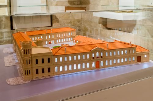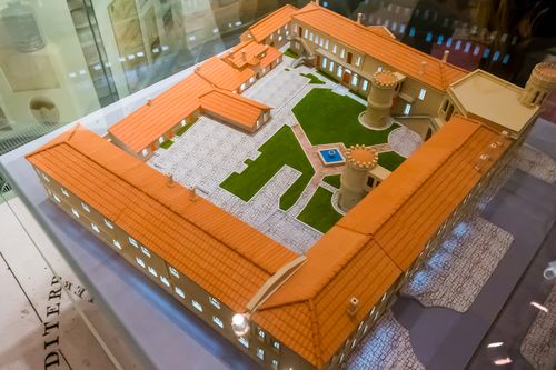 Макет воспроизводит большое количество мелких деталей архитектурного объекта — черепичную крышу, трубы, балкончики, лесенки, дворик со множеством ступенек, фонтаном, две внутренние и одну угловую башенки. Угловая башня, вместе с частью второго этажа — съемные, так как на втором этапе планируется изготовление интерьера «трапезной» комнаты. Помимо росписи на стенах и потолке «трапезной», на втором этапе появится разнообразное озеленение дворика, фонари на фасадах, флаг ИППО на главной башне, флюгер, автомобили на стоянке, модели людей.