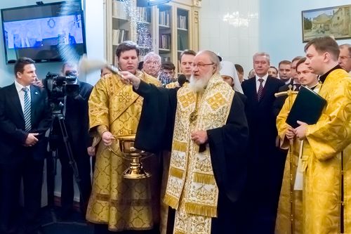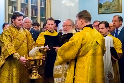 Для участия в заседании прибыл Святейший Патриарх Кирилл, возглавляющий Комитет почетных членов ИППО. Он совершил торжественный чин освящения старинного здания, в котором отныне работает Императорское Православное Палестинское Общество.