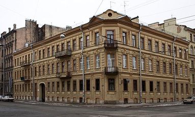 четырехэтажный дом (вместе с подвальным этажом) на углу ул. Мытнинской,