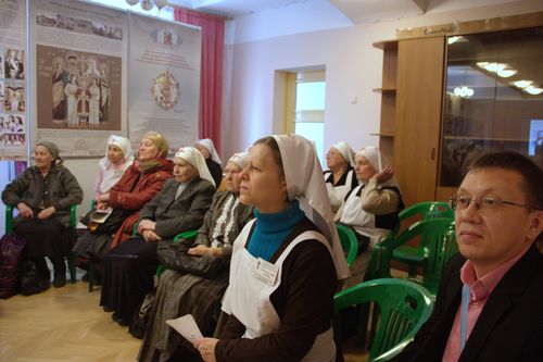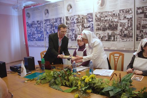 Затем о своей деятельности рассказали представители сестричества во имя святой преподобномученицы Елисаветы Фёдоровны при Троице-Владимирском соборе Новосибирска. Представители сестричества с благодарностью приняли в дар от председателя Новосибирского отделения ИППО Андрея Турова книги, рассказывающие о паломничествах Елизаветы Федоровны, и высказали желание активно взаимодействовать с Палестинским Обществом.