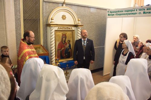 19 октября в рамках выставки в Новосибирске прошли мероприятия, посвященные 150-летию великой княгини Елизаветы Федоровны. Утром на выставку прибыла из Преображенского собора г. Бердска икона свв. прпц. великой княгини Елисаветы Феодоровны и инокини Варвары с частицей мощей. Перед этой иконой и перед чудотворной иконой Божией Матери «Иверская» был отслужен молебен. Пел хор сестричества во имя святой преподобномученицы Елисаветы Феодоровны при Троице-Владимирском соборе Новосибирска вместе с учащимися воскресной школы при Преображенском соборе Бердска.