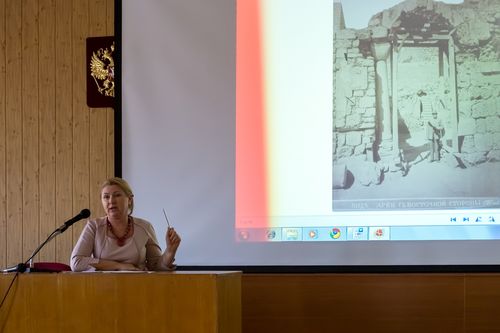 Наконец, ряд докладов был посвящен различным аспектам истории и деятельности Палестинского Общества. Первоначальному этапу научной, прежде всего археологической, работы ИППО в Палестине посвятила свое сообщение кандидат исторических наук Р. Б. Бутова: 10 (22 по н.ст.) июня нынешнего года исполнится 130-лет со дня обретения Порога Судных Врат на Александровском подворье в Иерусалиме.