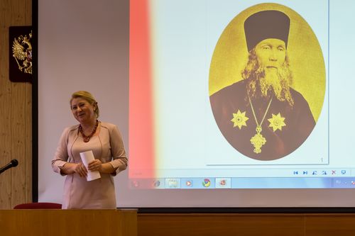 Хронологически завершало конференцию сообщение доктора исторических наук протоиерея Алексия Марченко о духовных связях великой княгини Елизаветы Федоровны и игумена Серафима (Кузнецова), доставившего мощи будущей преподобномученицы в Иерусалим.