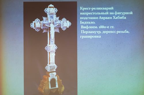 О паломнических реликвиях, связанных с поездками в Святую Землю великих князей Сергия и Павла Александровичей, было рассказано в сообщении кандидата исторических наук Е. В. Денисовой.