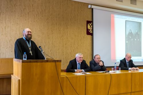 Приветственное слово от имени Председателя Императорского Православного Палестинского Общества, профессора, доктора юридических наук С. В. Степашина зачитал секретарь ИППО С. В. Фатеев.