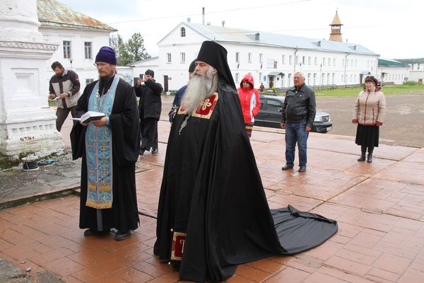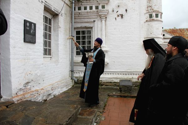 Архимандрит Тихон в сослужении настоятеля Троицкого собора иерея Виктора Титова и благочинного Верхотурского Николаевского монастыря иеромонаха Евангела совершил литию на могиле протоиерея Петра Арефьева, после чего состоялось открытие памятной доски.