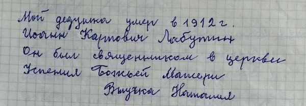 внучка отца И.Лабутина оставила памятную запись, но, к сожалению, не указала