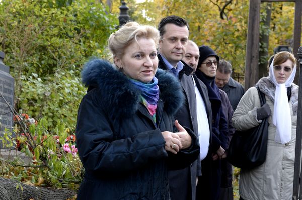 Александр Николаевич Панин, Семен Яковлевич Ваксман и Татьяна Иннокентьевна Гафт трижды пропели «Вечная память» и от имени Императорского Православного Палестинского Общества возложили цветы к подножию памятника.